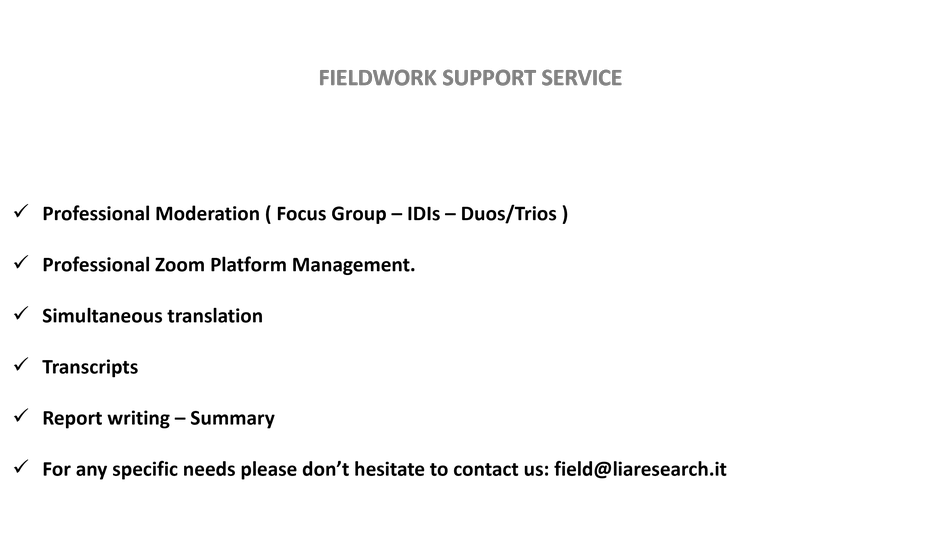 FIELD SERVICES - LIA RESEARCH - FIELD SERVICES IN ITALY